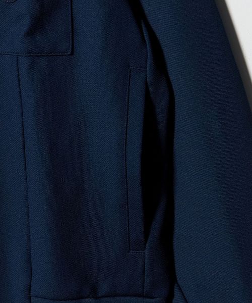 襟と裾のスリーストライプスや、胸ポケットの特別感あるワッペンがアクセントを添えます。