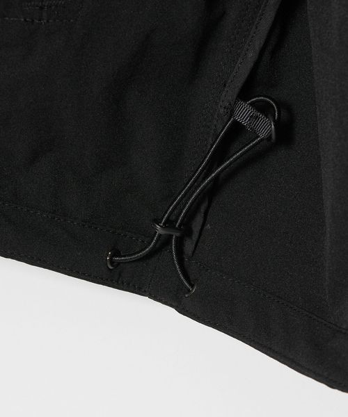 スピンドルを締めることで、フードや裾周りのボリュームを調整可能です。