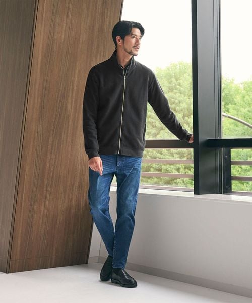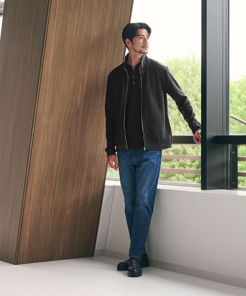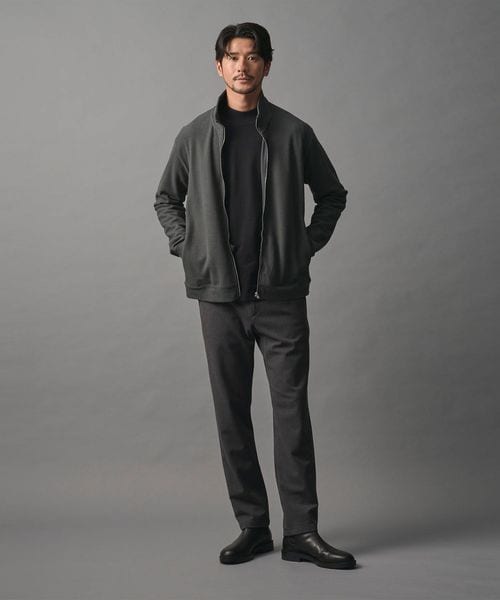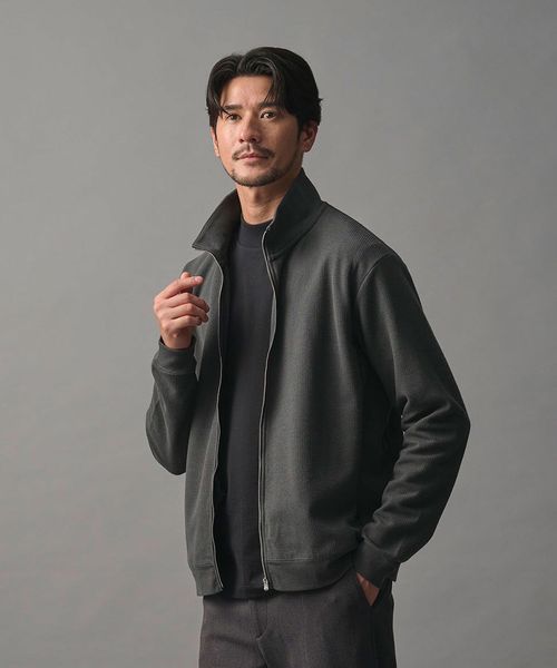 スタンドブルゾン型でスポーティに着用いただき、素材自体がジャージなので着心地のリラックス感は損ないません。