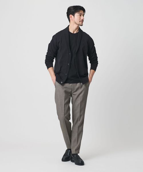 素材の陰影感がスマートでシックな印象のノータックスラックス