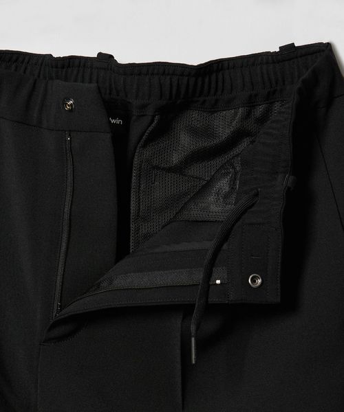 ウエストはゴム+スピンドルのイージー仕様で、ベルトループも装備。