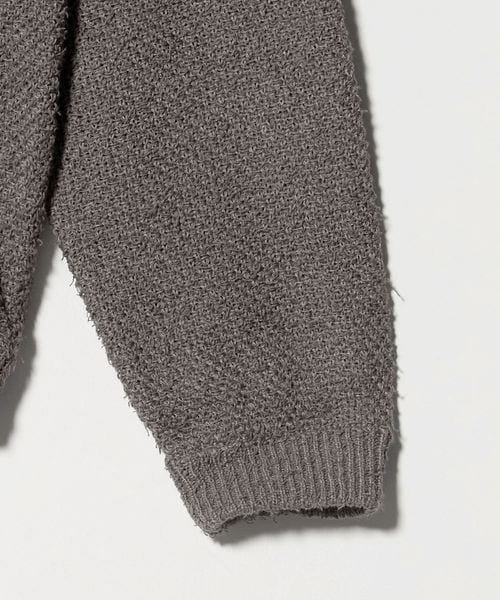 2種類の糸を用いた特殊な編み地が、奥行きのある表情を生み出し、シンプルながらも存在感のある一枚に仕上がっています。