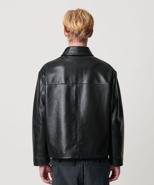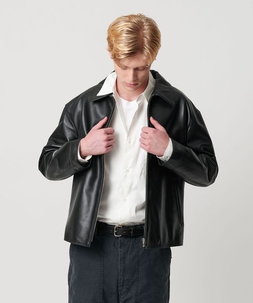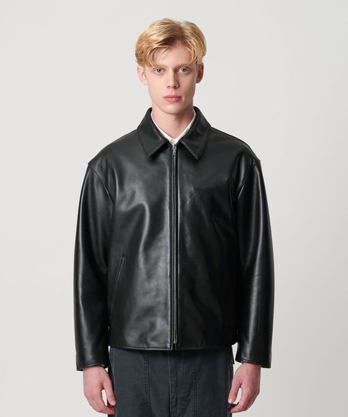 ハリ感のある上質なレザーを使用した、ミニマルデザインのブルゾン。