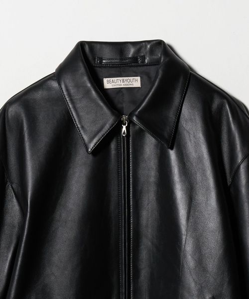 柔らかい印象でクリーンに着こなせるミニマルなシープレザーブルゾン