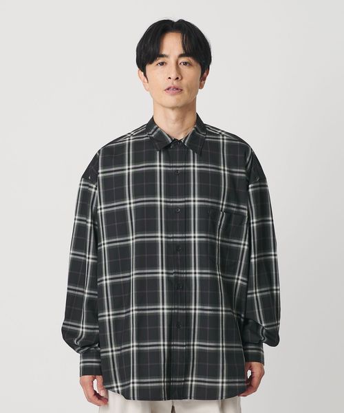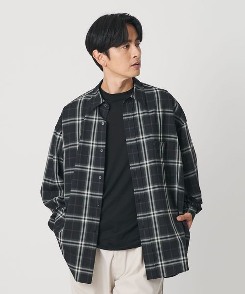 トラッドをベースにしつつ、モードなニュアンスを加えた色柄と、ゆとりのあるセミワイドシルエットで一枚でも着映えするデザインに。