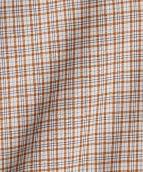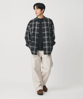 トラッドをベースにしつつ、モードなニュアンスを加えた色柄と、ゆとりのあるセミワイドシルエットで一枚でも着映えするデザインに。