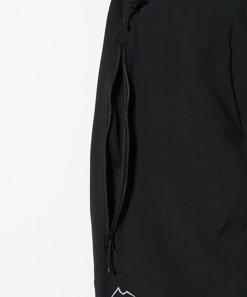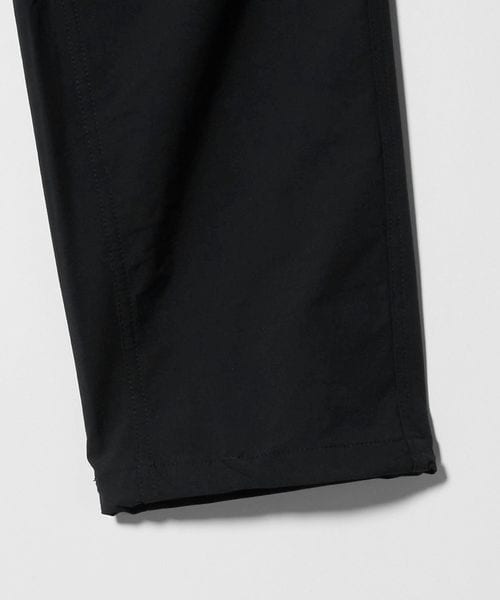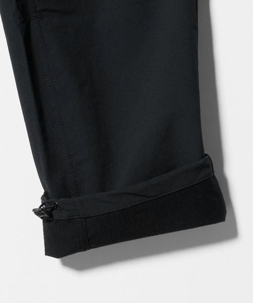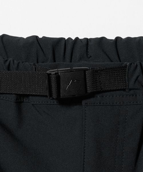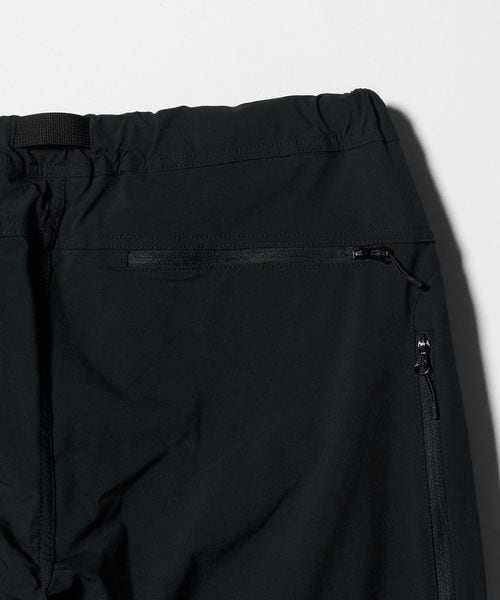 シンプルなルックスながら、ウエストをスムーズに調整できるウェビングベルトや、シルエットをアレンジできる裾のドローコード、蒸れを軽減するための背面ベンチレーションなど、実用的なディテールが満載。