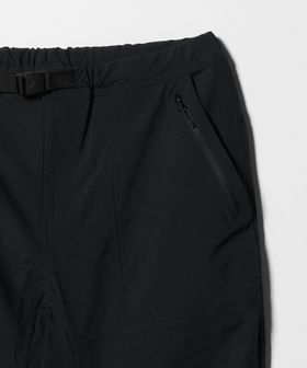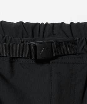 シンプルなルックスながら、ウエストをスムーズに調整できるウェビングベルトや、シルエットをアレンジできる裾のドローコード、蒸れを軽減するための背面ベンチレーションなど、実用的なディテールが満載。