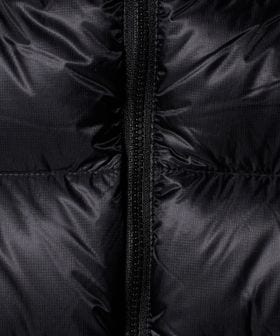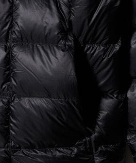 ナイロン素材を使用したシンプルデザインのダウンジャケット。
