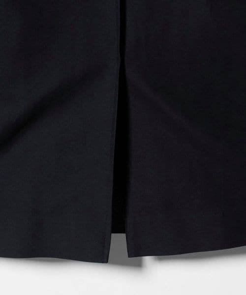 フロントのボタンスルー仕様が印象的な、膝下丈のAラインシルエット。