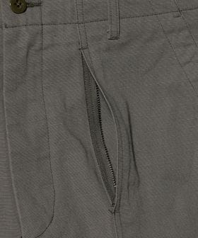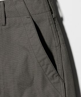 特徴的なフロントのL字ポケット脇には、さらにジップポケットが追加されており、シンプルな中にも<ENGINEERED GARMENTS>らしいユニークなギミックが備わっています。