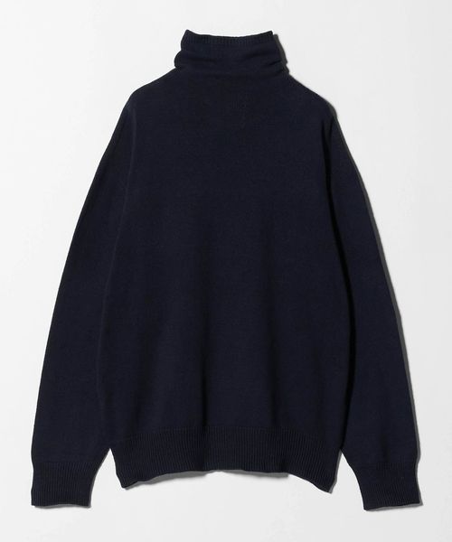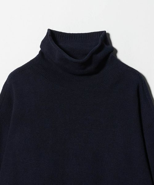 ウールのようなふくらみと温かみを持ちながら、コットン100%で仕立てた新素材のタートルネックニット。