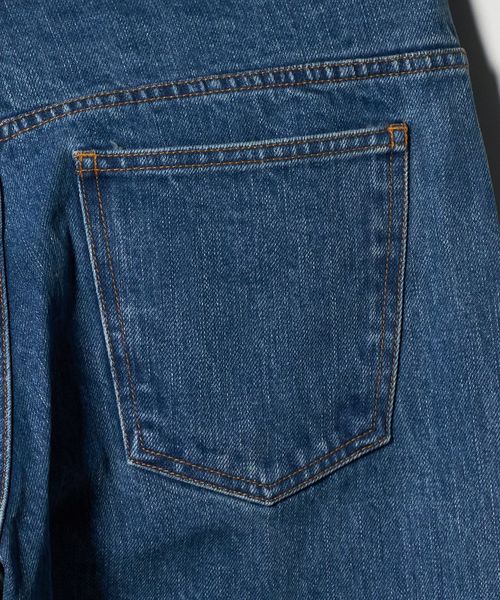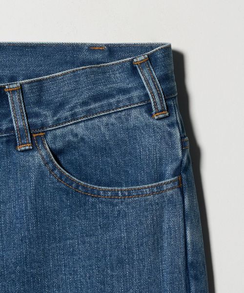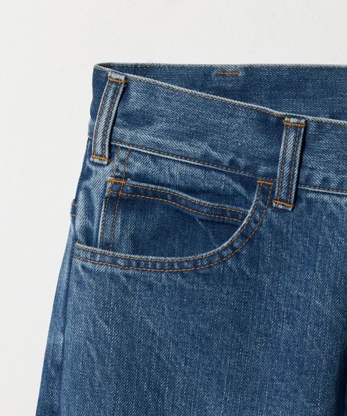 丁寧な加工により、全体に程よいフェード感と縦落ちのニュアンスが加わり、はき込んだような自然な色落ちを楽しめます。