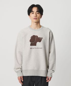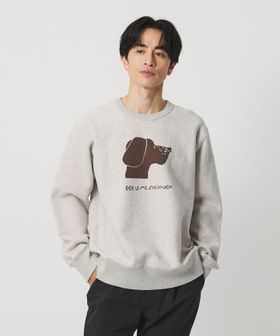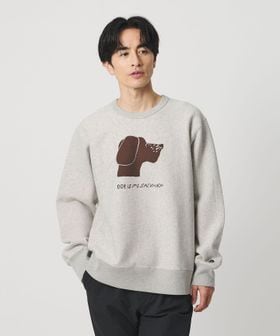 犬の横顔をモチーフにした、遊び心あふれるイラストをあしらったプリントスウェット。