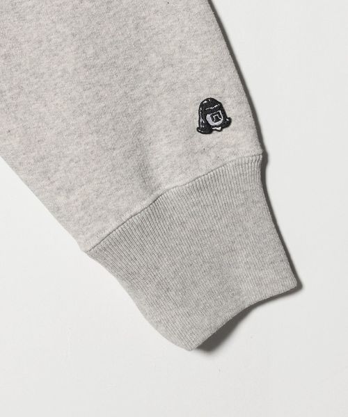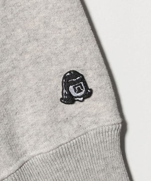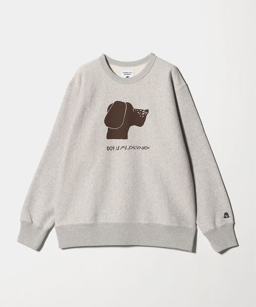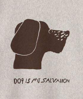 犬の横顔をモチーフにした、遊び心あふれるイラストをあしらったプリントスウェット。