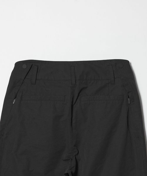 サイドにはコンシール仕様のジップポケット、膝下にはベンチレーションディテールを施し、快適性を確保。
