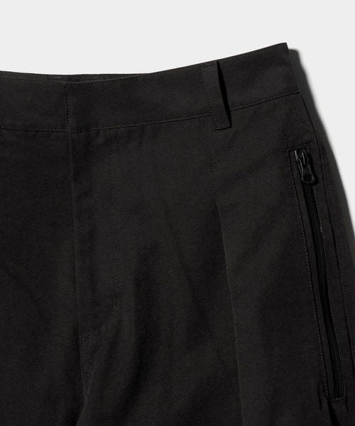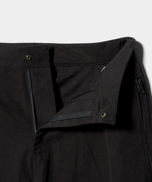 ウエストの隠しスナップ、フロントのタックディテールによりクリーンな印象に。