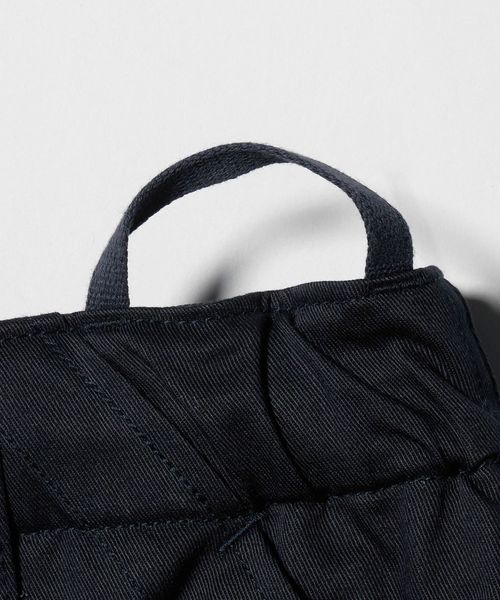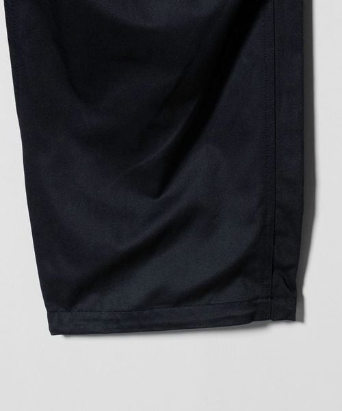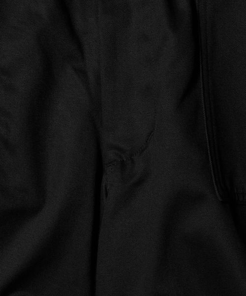 膝にタックを入れた立体的なフォルムに加え、フロントの大容量パッチポケットやサイドのジップポケットなど、機能性とデザイン性を両立。