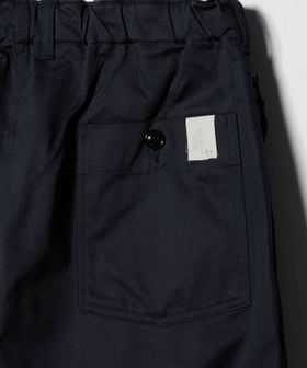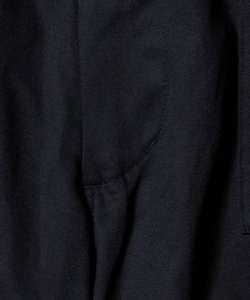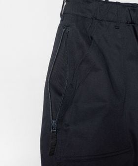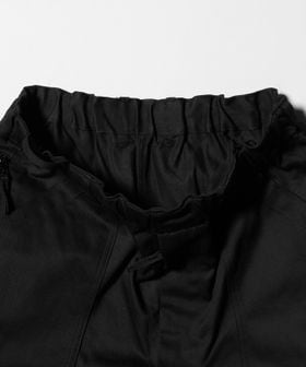 膝にタックを入れた立体的なフォルムに加え、フロントの大容量パッチポケットやサイドのジップポケットなど、機能性とデザイン性を両立。