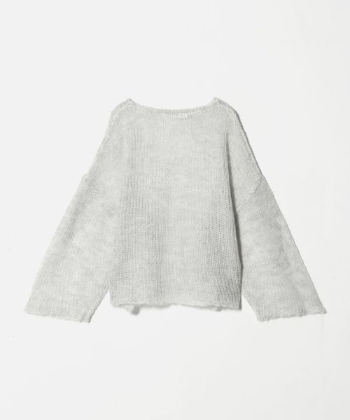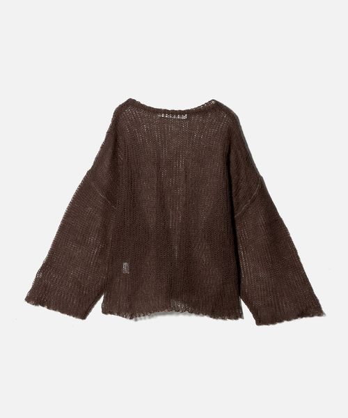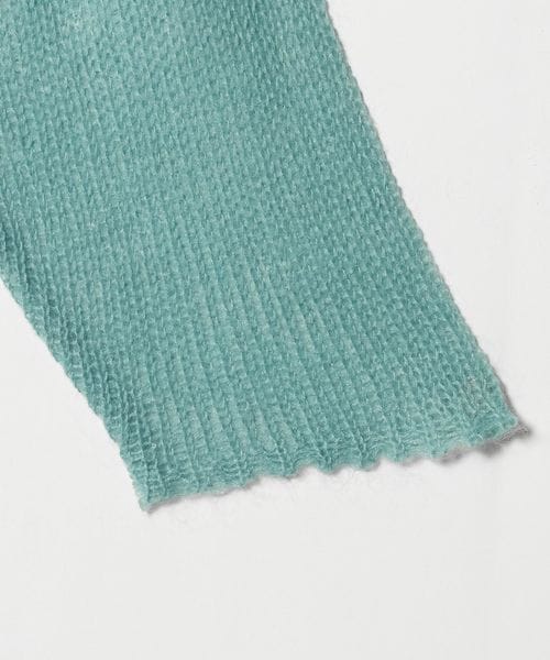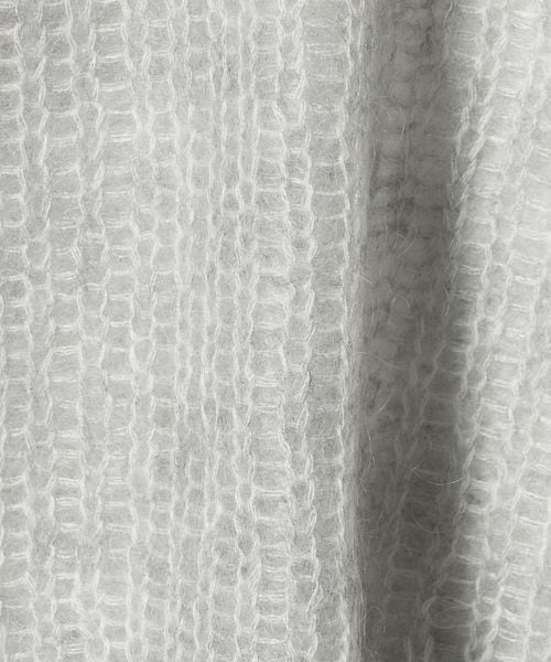 毛×ナイロンをブレンドした糸を使用し、軽やかで透け感のある風合いに仕上げられた一枚です。