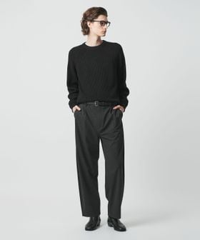 ウールライクな表情の生地を使用し、シンプルなスラックスデザインに落とし込むことで、シルエットの美しさが際立つ一本に仕上げました。