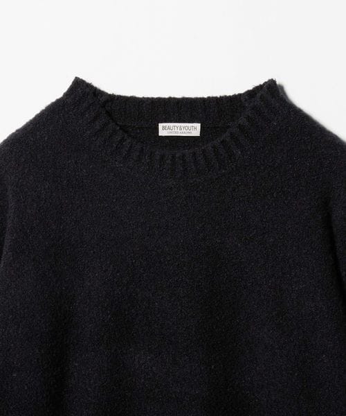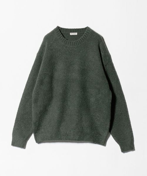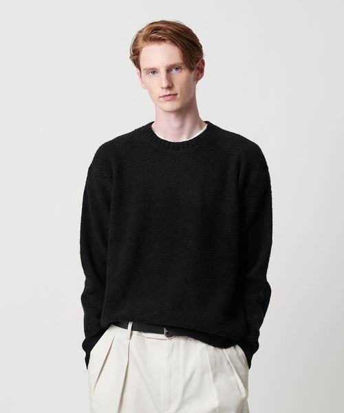 秋冬シーズンらしい温かみがありながらも、空気をはらんだようなループ状の表面がユニークな素材感のクルーネックニット。
