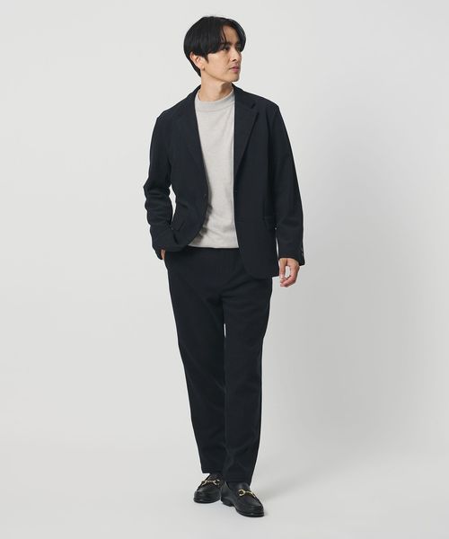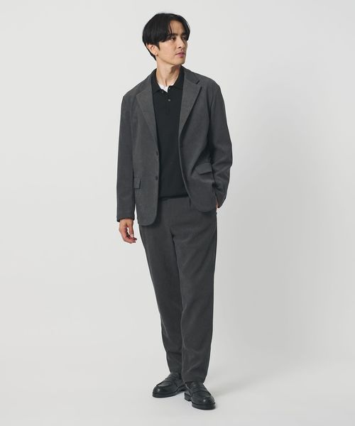 同素材のテーパードパンツとのセットアップスタイルがイチオシ。