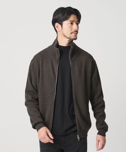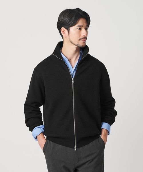 ウォッシャブル対応。ウールミックス畦編みドライバーズジャケット