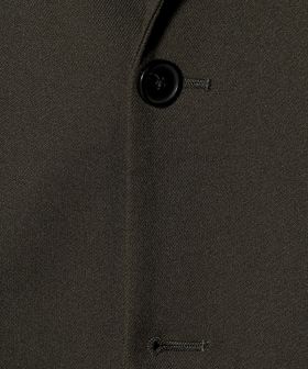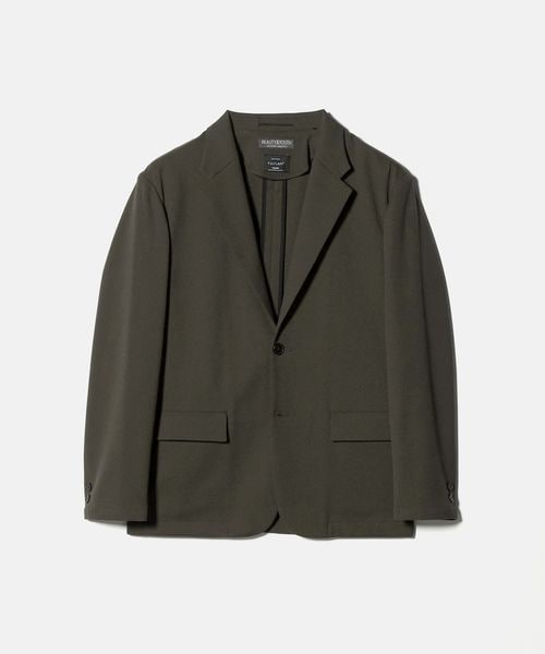 ウエストにシェイプが少ないややボクシーなシルエットなので、インナーにはクルーネック物を合わせて適度にリラックスしたコーディネートに最適です。