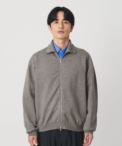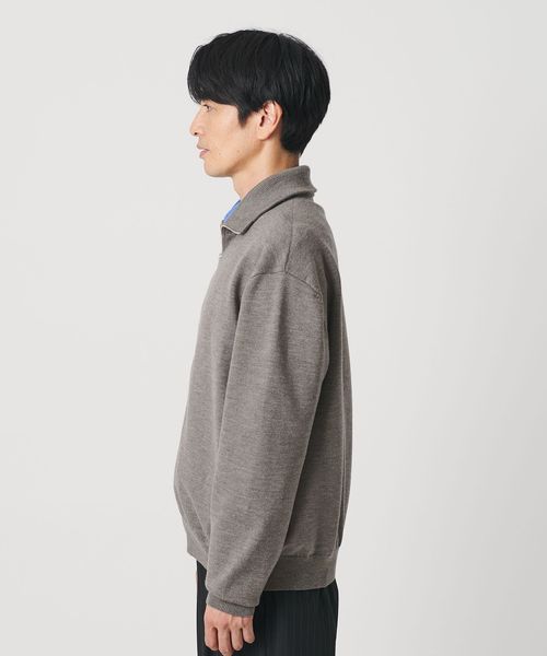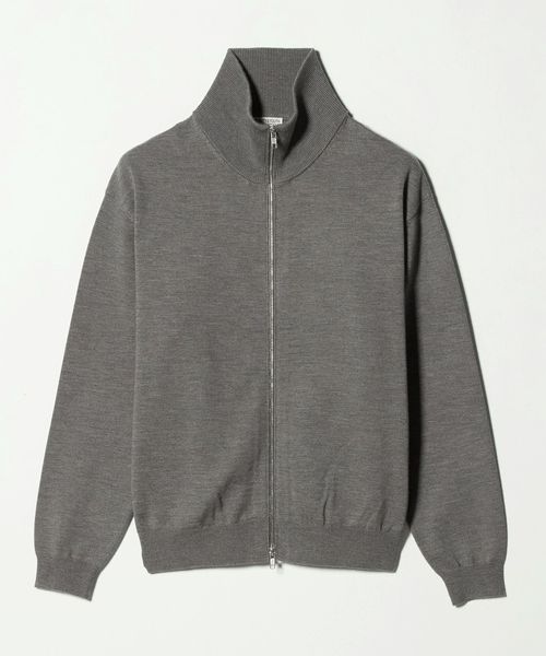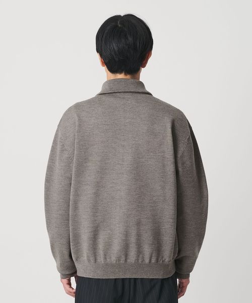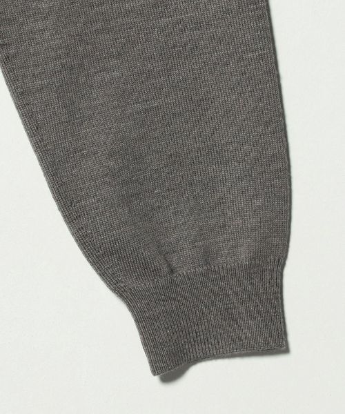 上質なウーステッドウールと安定感のあるポリエステル糸をプレーティング編みで仕立て、ファインゲージニットの繊細な表情と、しっかりとしたハリ感を両立。