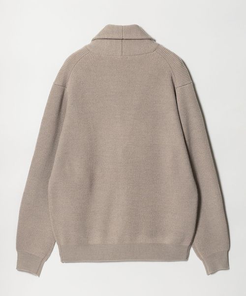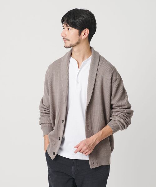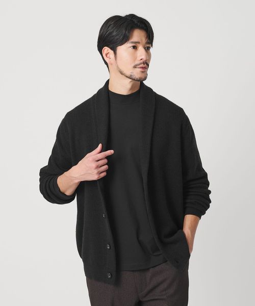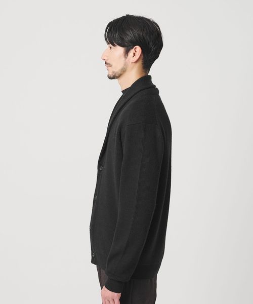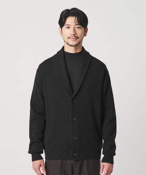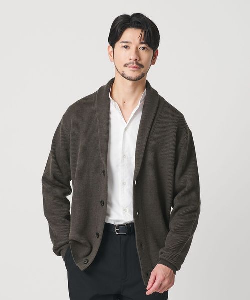 ウォッシャブル対応。ウールミックス畦編みショールカラーカーディガン