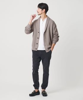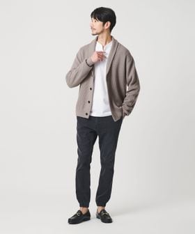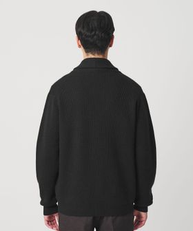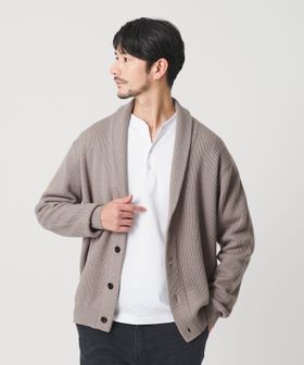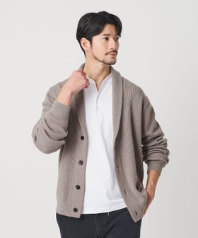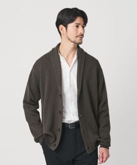 ウォッシャブル対応。ウールミックス畦編みショールカラーカーディガン