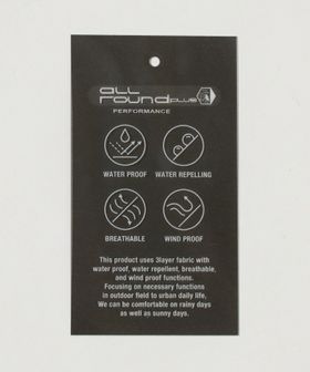 撥水・防水・透湿・防風機能を備えた3レイヤーファブリックを使用しています。