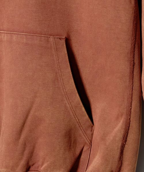 ケミカル加工によってヴィンテージ感を演出したスウェットパーカ。