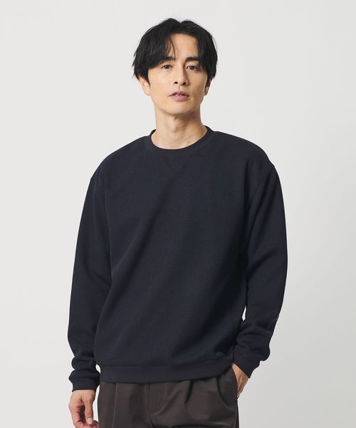 身幅に適度なゆとりを持たせつつ、袖口・裾のリブ幅を狭めることで、きれいめな印象に仕上げたクルーネックスウェット。