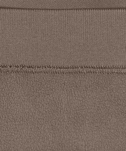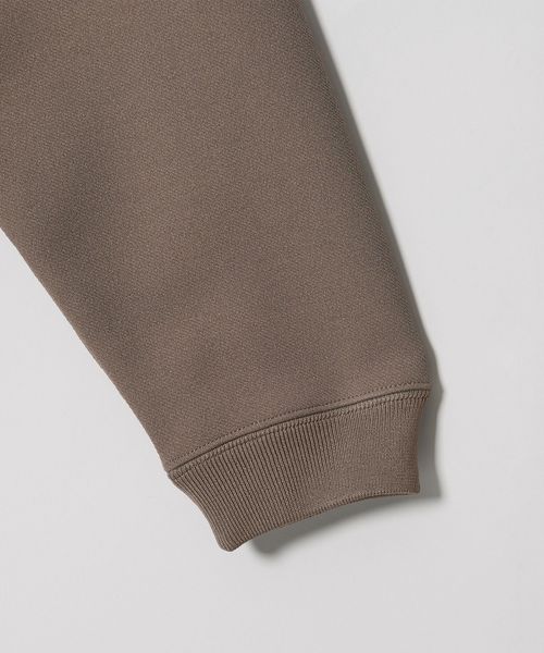 表地には梨地組織のハイゲージジャージ、裏地には柔らかなポリエステルフリースをボンディング加工で貼り合わせた高機能素材を使用。