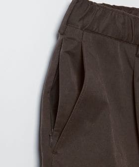テーパードシルエットにワンクッションのレングス設計で、リラックス感とスマートさを両立。
