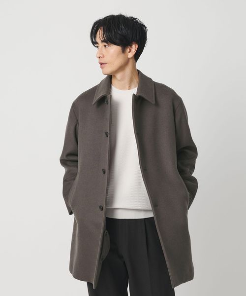 二重織による厚みとしなやかさが、コート全体の立体感を引き立てます。