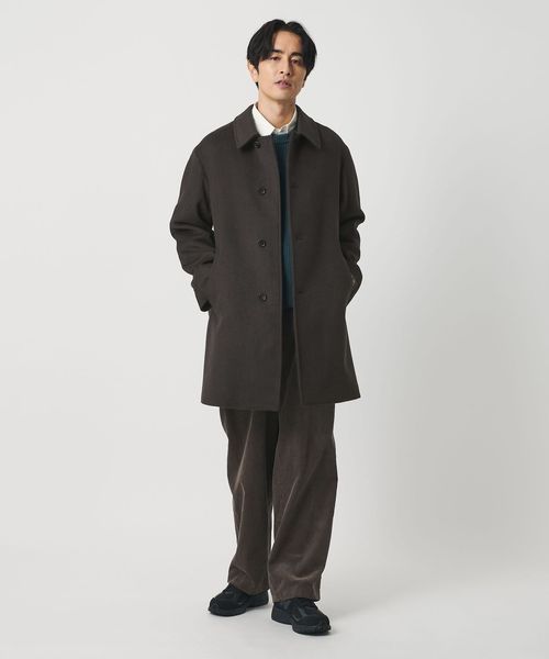 二重織による厚みとしなやかさが、コート全体の立体感を引き立てます。