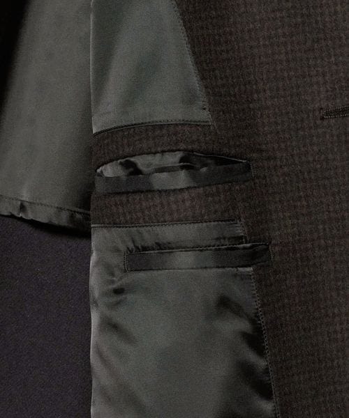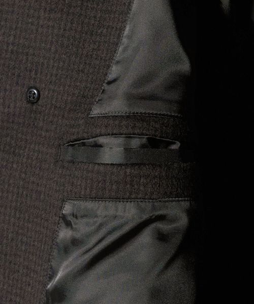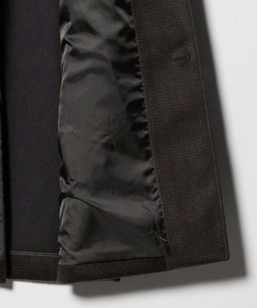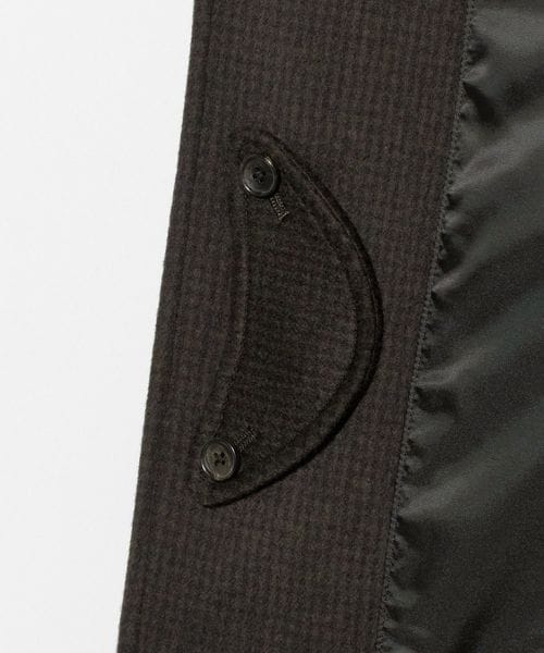 ダークブラウンの千鳥格子柄をあしらった別注のメルトンウール生地を使用。