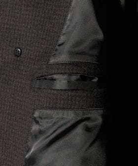 ダークブラウンの千鳥格子柄をあしらった別注のメルトンウール生地を使用。