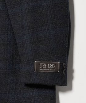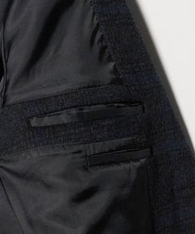 シックなチャコールグレーカラーのグレンチェック柄の別注ウールメルトンを使用。
