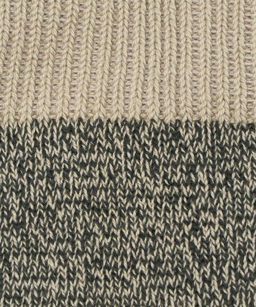 トーナルな2色を撚り合わせたメランジ糸を使用し、奥行きのある表情に仕上げた一足です。