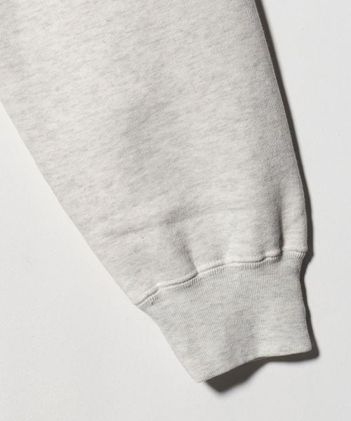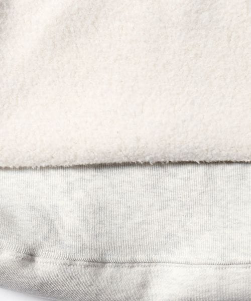 表面にはコットン、裏面のループにはポリエステル混紡糸を採用し、起毛加工によって柔らかく、保温性に優れた風合いに仕上げています。