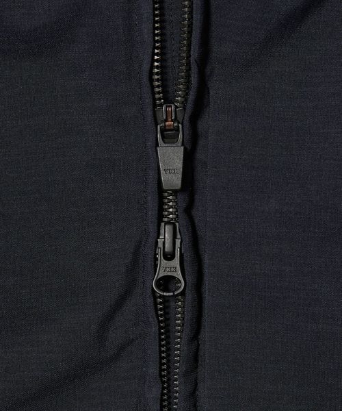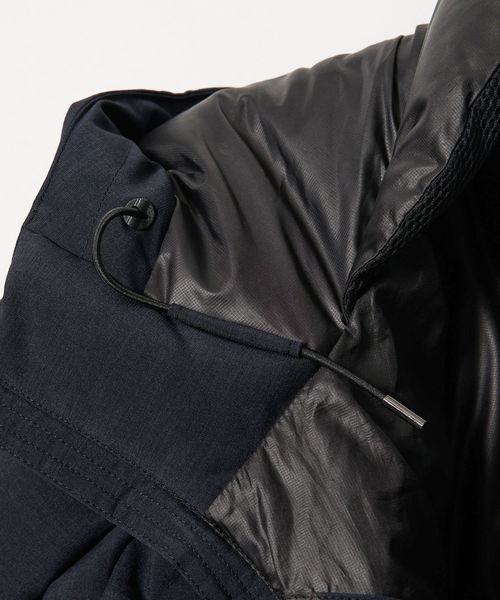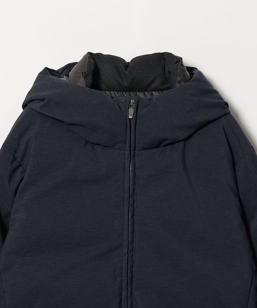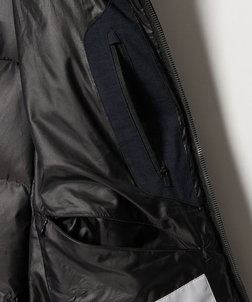 700フィルパワーのダウンを贅沢に封入しながらも、脇から袖下を中綿に切り替えることで、膨らみを抑えたシャープなフォルムに。