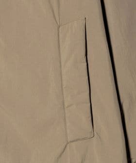撥水機能のあるピーチ起毛のナイロンタフタを表生地に使い、少ない綿で膨らみを出せるADSシステムを採用。