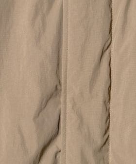 撥水機能のあるピーチ起毛のナイロンタフタを表生地に使い、少ない綿で膨らみを出せるADSシステムを採用。