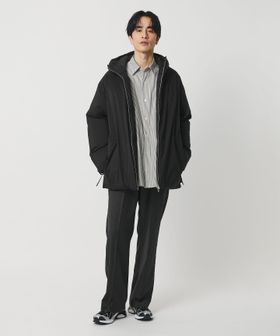 一方で、裾のドローコードを軽く絞ってほんのりと丸みをつければ、ワイドパンツとも好相性。