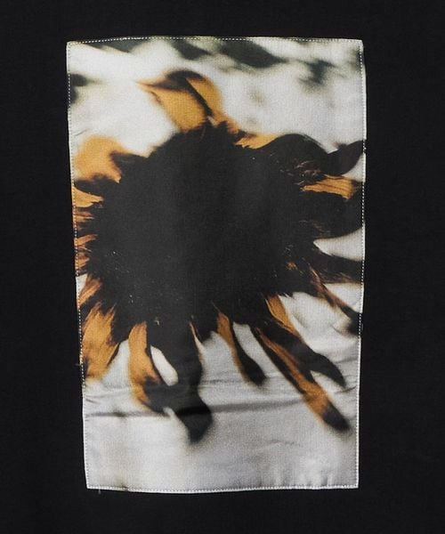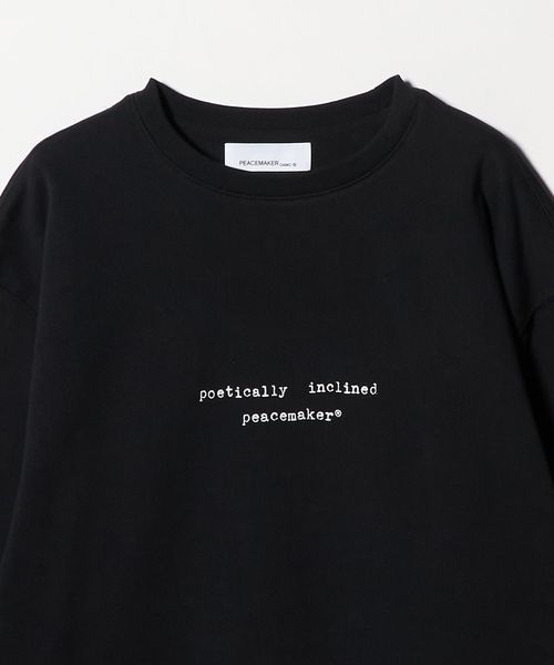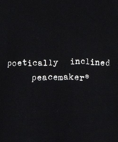 フロントには「poetically inclined」というメッセージをプリントし、バックには印象的なグラフィックを配置することで、存在感のあるデザインに仕上げています。