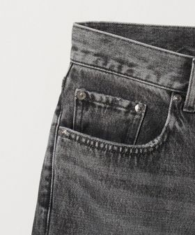 シンプルなトップスと合わせるだけで、デニムの表情が際立つスタイルに。